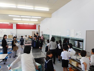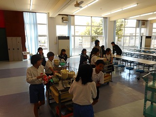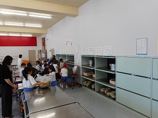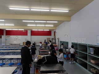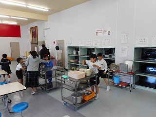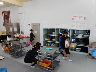 給食委員会のみなさんも手伝いながら、どのクラスもきちんと後片付けをしています。