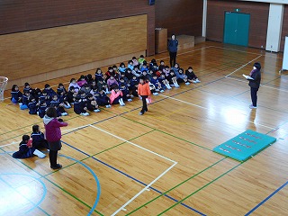 あさって、新1年生を迎える会があります。この会は、現在の1年生がお世話をします。4限目に、そのための練習を体育館でしていました。