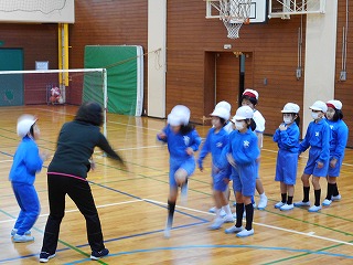 3年生が6限目の体育の時間に8の字跳びをしていました。