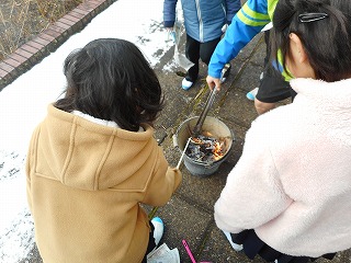 3年生が昔の道具(七輪)を使って、お餅を焼きました。