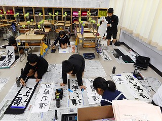 3,4限目には書初め大会がありました。集中して取り組んでいました。
