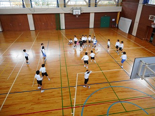 2年生は晴れていたら元気に外で遊ぶことが多いですが、今日は雨で体育館でドッヂボールをしていました。みんな仲良く、たくさんの友達と楽しんでいました。