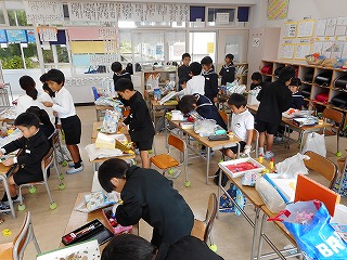 2年2組の皆さんが、図工の時間に、身のまわりから材料を集めて、箱の中に飾ることを楽しみました。