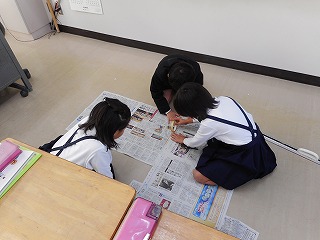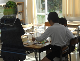 6年生が、1,2限目に1組、3,4限目に2組が美術教室がありました。