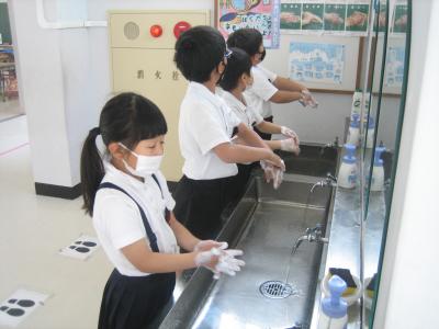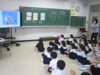 1,2年生がコロナウイルス感染症予防のため養護教諭の指導の下、手洗い教室を行いました。