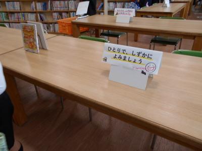 図書館でも,おしゃべりせず,静かに読書に親しんでもらえるよう配慮しています。
