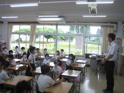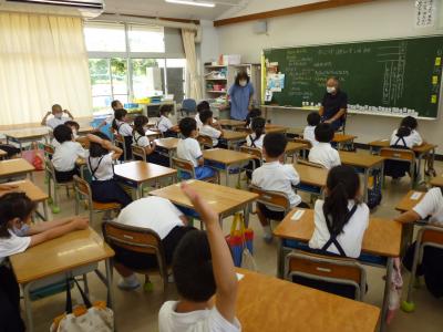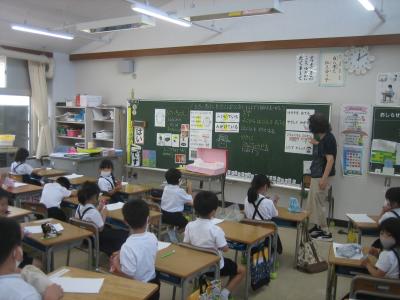 ゲストティーチャーに校務員の金内さんをお迎えして、1年生の道徳の授業が行われました。