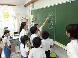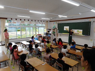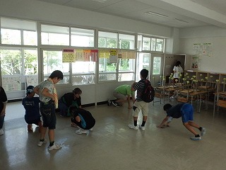 蒸し暑い中、楽しそうに小学校を探検していました。