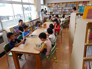 その後、図書館で読書をしました。いろいろな本があって、喜んでいました。