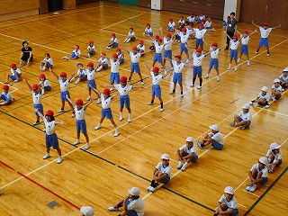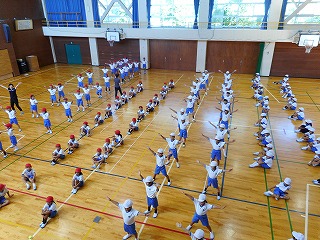 1,2年生も、体育館でダンスの練習に取り組んでいました。