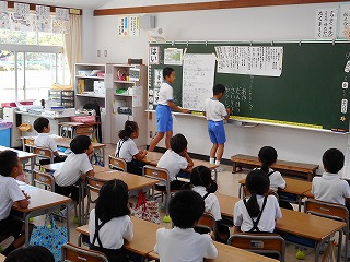 最後に1年生の教室に入りました。今日のふり返りをしていました。