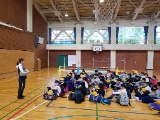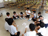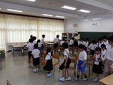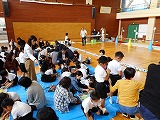 体育館に避難した後、警察の方から、不審者に対する対応の仕方を教えていただきました。