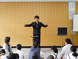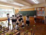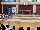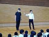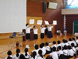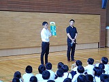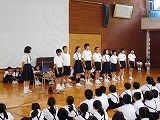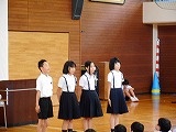 全校集会では、新しく来られた事務の先生、教育実習の先生の紹介がありました。