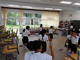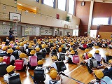 5限目に集団下校訓練がありました。全校児童が体育館に地区ごとに集まりました。