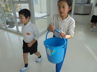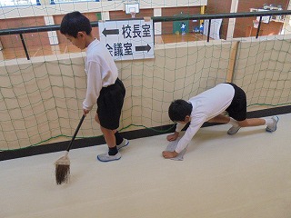 寒い中、自分たちの使った教室や廊下の清掃を頑張っている様子を紹介したいと思います。