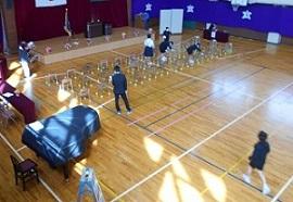 密を避けるために、1,2,4年生は各教室で、3年生は会議室で、5,6年生は体育館で、