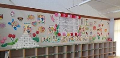 きれいなアヤメの花や美味しそうな柏餅など,子どもたちが季節を感じられる飾りです。