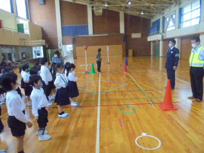 1年生は安全な登下校のため、町役場の方と警察の方に来ていただき交通安全教室を行いました。