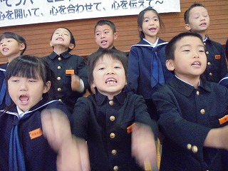 子どもたちは音楽劇「くじらぐも」の合唱を一生懸命練習しています。