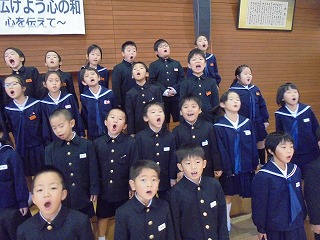 また、音楽の授業で勉強した「夕焼け」や「こぎつね」を演奏していただき、子どもたちも一緒に歌いました。
