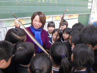 馬の皮や筋や毛を用いて作った楽器で演奏された音は素敵な音色を教室に響かせてくれました。