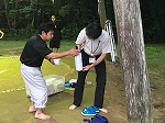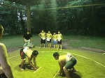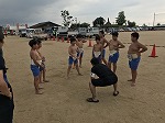とても暑い中、子どもたちはすり足やぶつかり稽古を行いました。