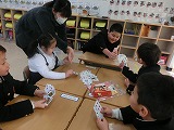 子どもたちが持って来た福笑い、すごろく、ぼうずめくり、カルタ、お手玉、竹とんぼ等を楽しみました。