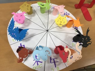 今日は、生活科のお勉強でお正月遊びや昔遊びの体験と、国語のお勉強でお店やさんをしました。