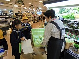 カジマートには体が不自由な人のための駐車場、需要に合った量の野菜、希望に沿って捌いてくれる刺身、産地を明記してあるお肉、温かい惣菜を出す工夫、人が選びやすいような陳列方法、会計しやすいレジの工夫など多くの発見がありました。子どもたちはお店の人にインタビューしたり、商品を観察したりと大変真剣に学んでいました。