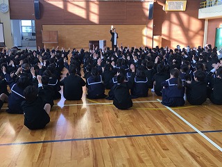 2017年1月13日 14時10分 長休みに英語スピーチコンテスト校内発表会が行われました。代表となる5年生は様々なジェスチャーを取り入れて、6年生は自分たちで作った英文を工夫して、表現していました。全員が大変すばらしい発表をし、全校児童もそのすてきな発表に驚いていました。