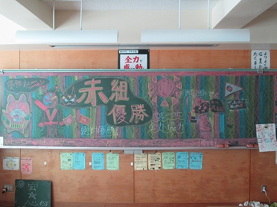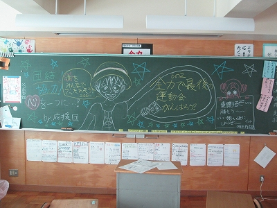朝、学校に来ると全クラスの黒板には応援団からの熱いメッセージがありました!