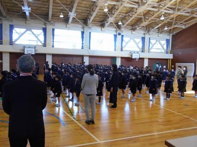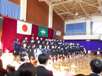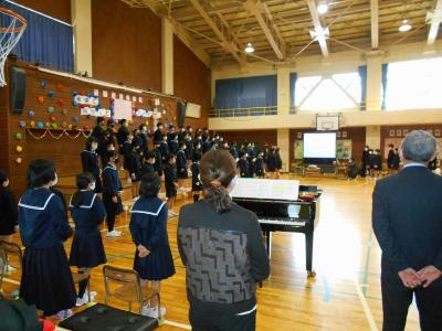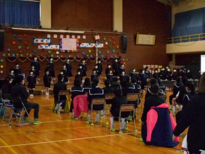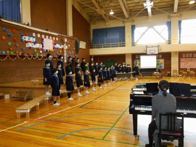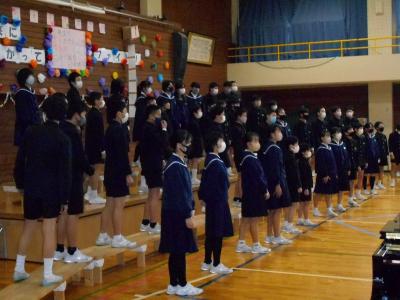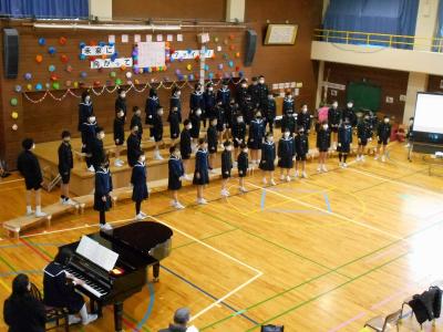 最後は、校歌を全校児童で歌いました。大きくて元気な声が体育館に響きました。