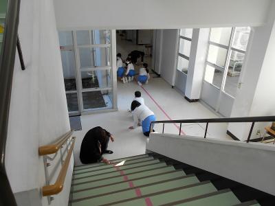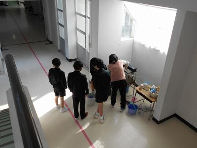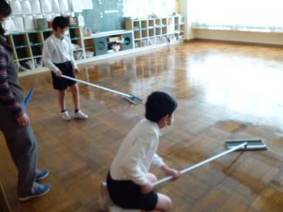 今日は1~4年生、6年生は5限で下校し、5年生は6限にワックスがけを行いました。