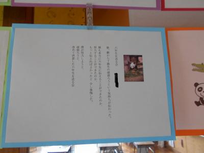 廊下には、図書ボランティアさんと6年生との思い出の本が展示してあります。