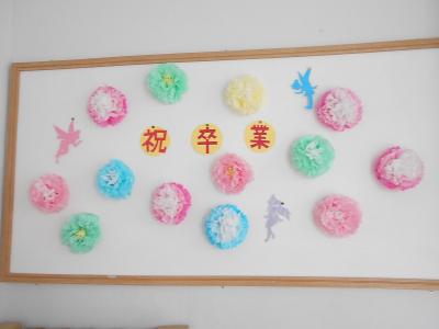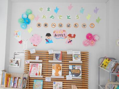 3/4(木)図書ボランティアさんが、図書館を卒業向けの飾りでいっぱいにしてくださいました。