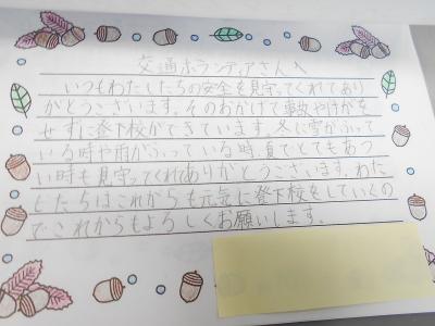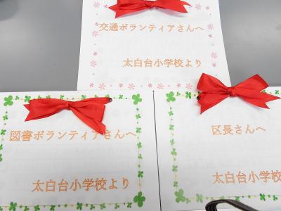 1年間お世話になった地域の方々やボランティアさんたちへ、全校児童で手紙を書きました。