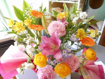前日には素敵なフラワーアレンジメントを届けてくれました。本当にありがとうございました。