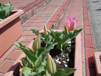 低学年玄関のチューリップも少しずつ咲き始めました。