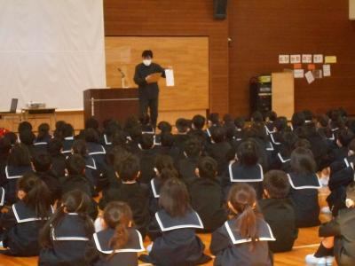 6年生には「卒業」という別れが間もなく訪れます。「言わなくても分かるだろう」と思っている気持ちを伝えることの難しさ、気持ちを言葉にすることの大切さを、5年生の朗読から感じたと思います。
