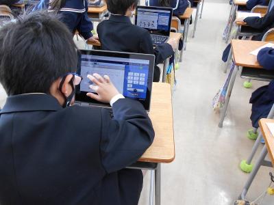 1年生は通知表渡しの間、chromebookを使って、ミライシードの国語や算数のドリルをしました。