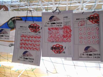 昨日は4年1組が進級ミッションに合格し、新幹線の太白号に1番乗りしました。