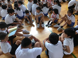7月の全校集会が行われました。暑い日でありましたが、子どもたちは最後まで静かに聞くことができました。本当に聞く力が育っています。