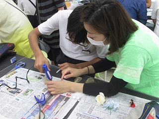 作るのは少し難しかったですが、お家の方と力を合わせて、オリジナルのコサージュができました!!