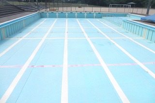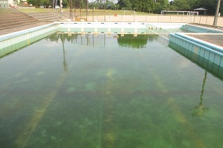 こんな汚いプールを、一生懸命デッキブラシやたわしで磨きました。