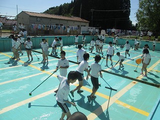 最初は怖がっていた1年生もいましたが、6年生におんぶをしてもらい、安心して入ることができました。すぐに楽しそうな声がたくさん聞こえてきました。