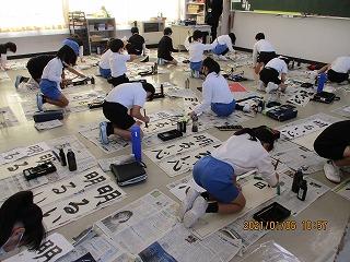 1/6(水)始業式が終わった後は、書初め大会を行いました。