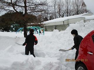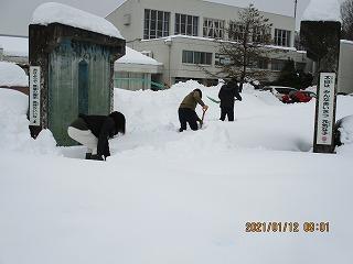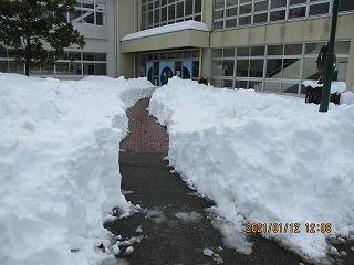 学校では、教職員が協力して校舎周辺の除雪を行い、子どもたちが歩行できる状態になりました。