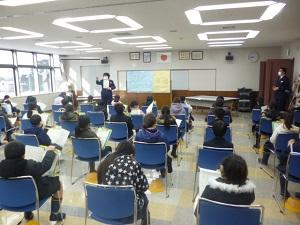 石川県警察のしくみ、津幡警察署の各課の仕事内容や交番の大切な役割、警察官の服装や持ち物などについて、大変分かりやすく説明していただきました。子どもたちは初めて知ったことに驚きながら、真剣に聞き、たくさんメモをとっていました。