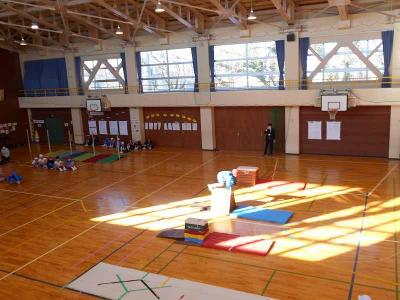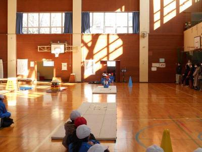 静かな体育館でとても緊張したと思いますが、たくさんの保護者の皆様に見守られ、頑張って演技ができました。
