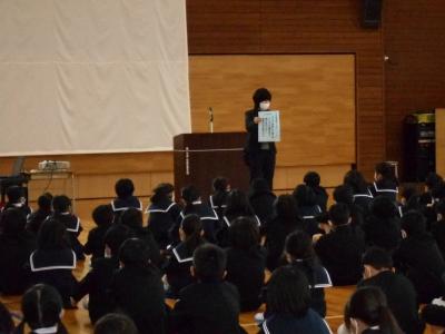 2月1日(月)3限目、前半は低学年、後半は高学年に分かれて、2月の全校集会を行いました。